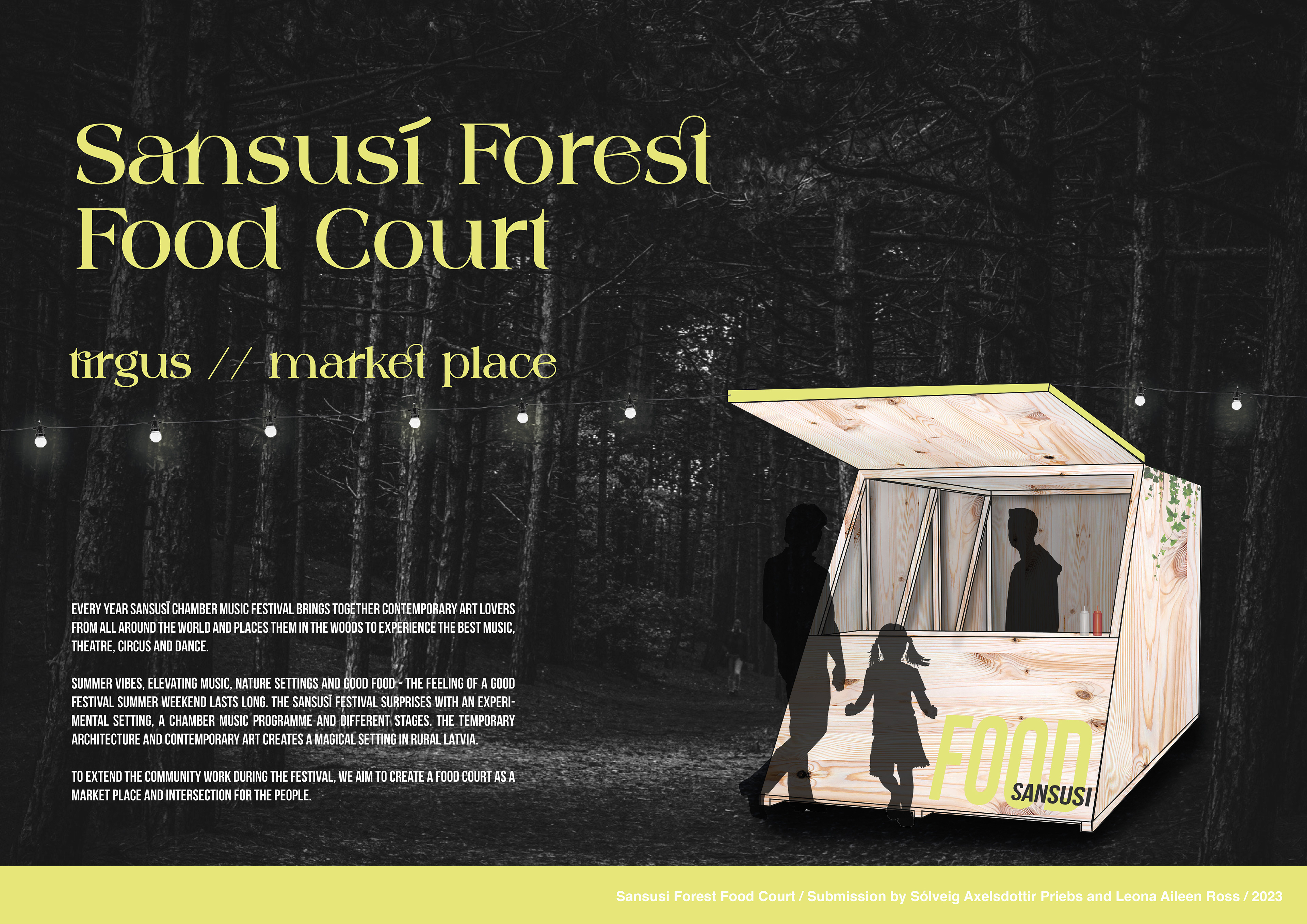Wettbewerb Sansusī ist ein innovatives und junges, jährliches Musikfestival in den Wäldern von Lettland. Teilnahme am Wettbewerb für Buildner Architecture Competitions. Projektidee mit Aileen Ross.